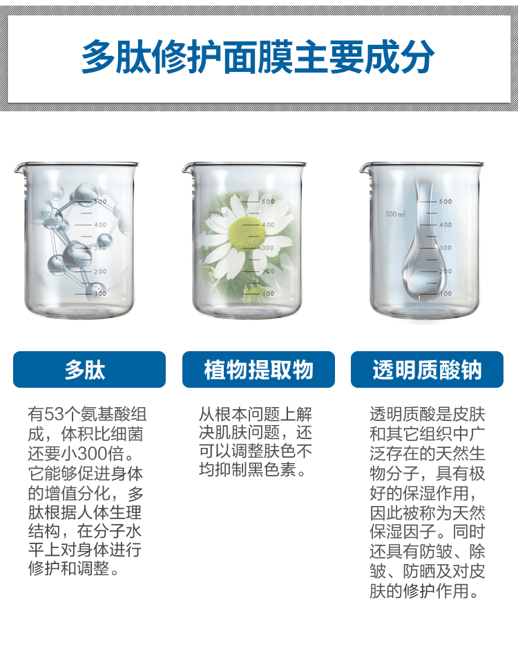 【產品成分】:透明質酸、金黃洋甘菊提取物、小葉海藻提取物、金盞花提取物、水解酵母提取物等。
